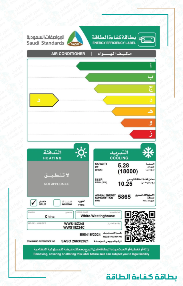 مكيف اسبليت , ماركة وايت ويستنج هاوس , مقاس 18 , بقدرة 18000 وحده , بارد , WWS18Z24I/C