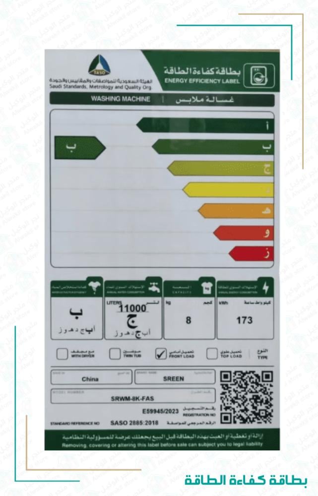 مواصفات غسالة اتوماتيك امامية سرين 8 كيلو – 16 برنامج – سلفر:
